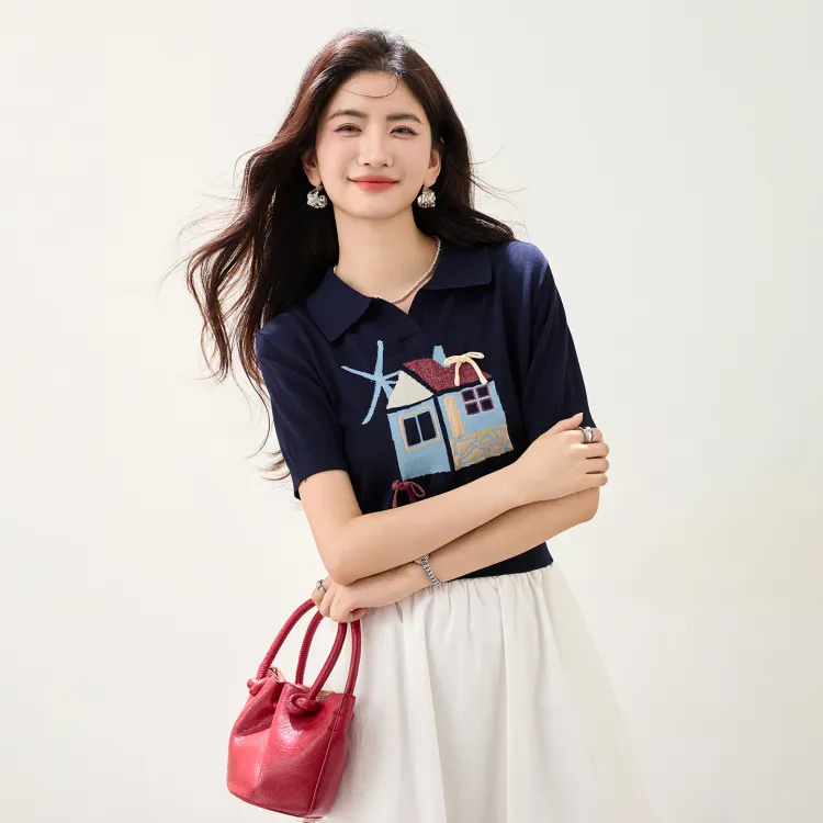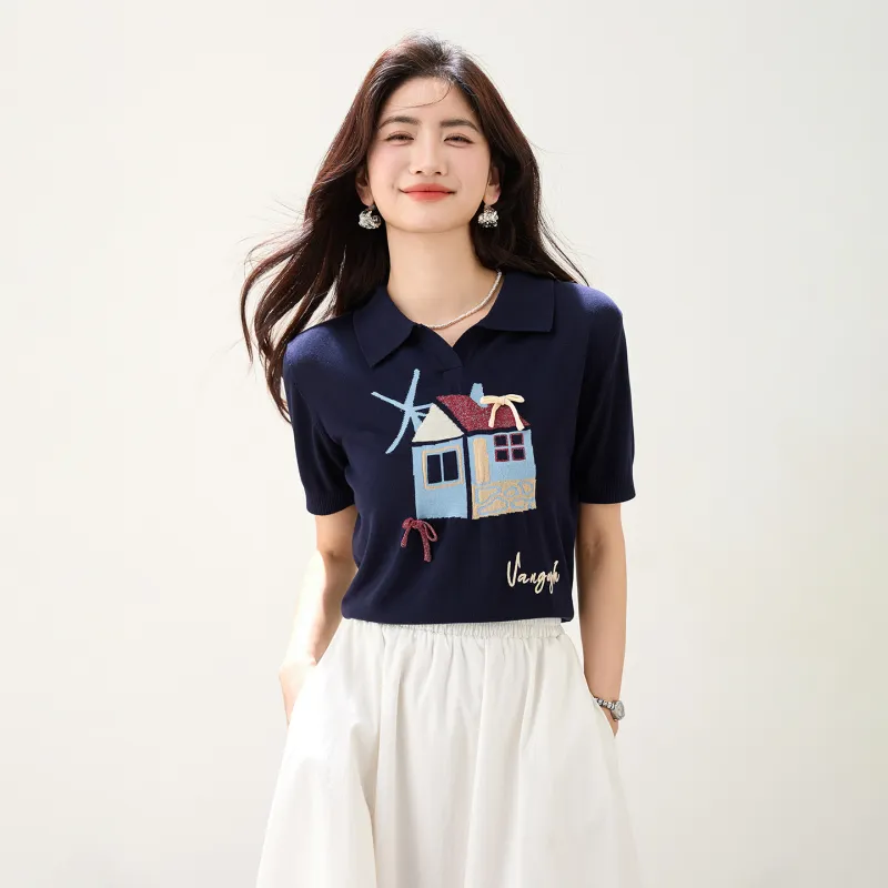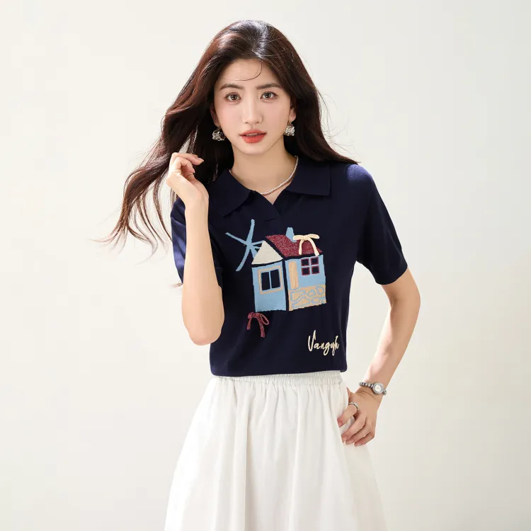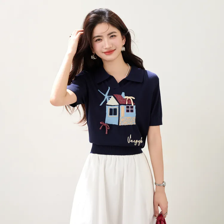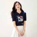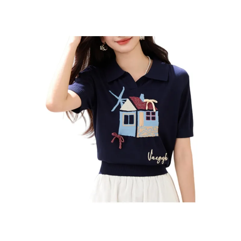 LANMOU 5316 Темно-синий Синий Женская T-рубашка