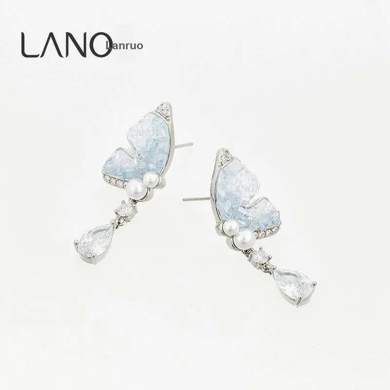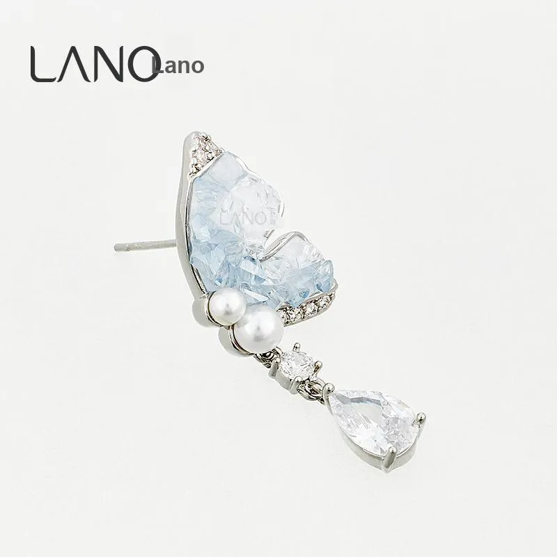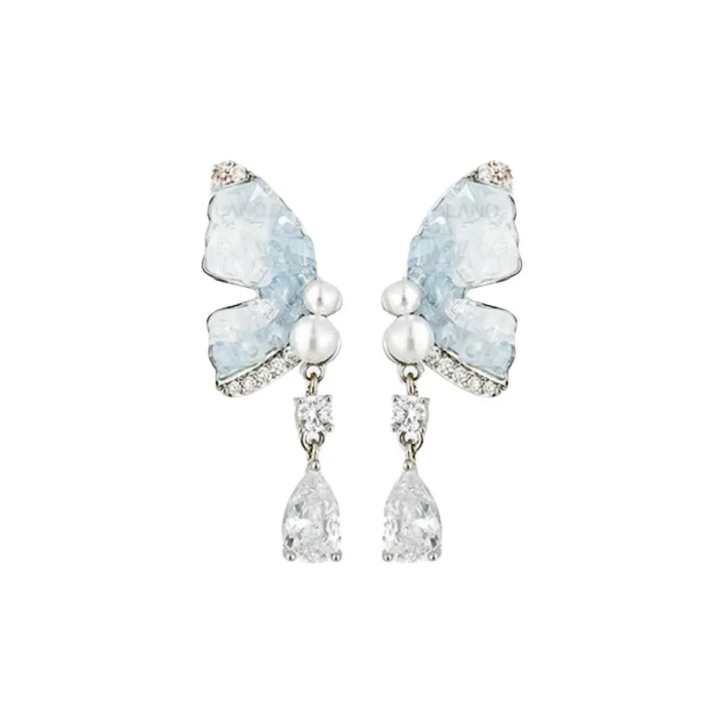 Стиль:Серьги-гвоздики "Ледяной кристалл" с синим бабочкой