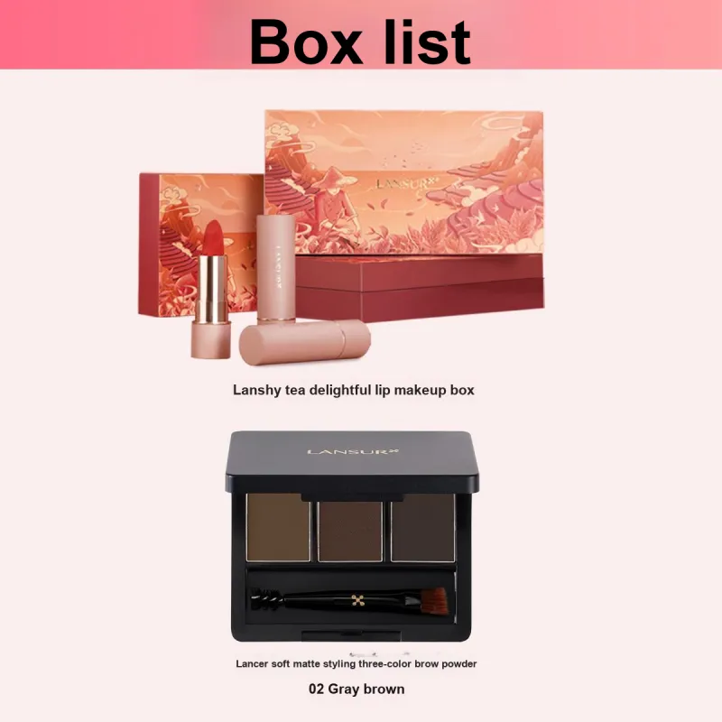 Мятный чай, радость + Lancer, мягкий матовый финиш, кисть для бровей трехцветная, пудра
