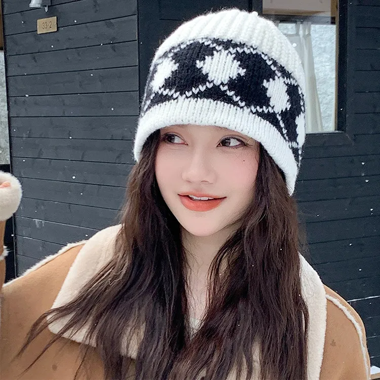 Ромб Вязаная Шапка-Экрю/Ромб Вязаная Шапка-Красный/Ромб Вязаная Шапка-Черный/Ромб Вязаная Шапка-Серый/Ромб Вязаная Шапка-Кофейный