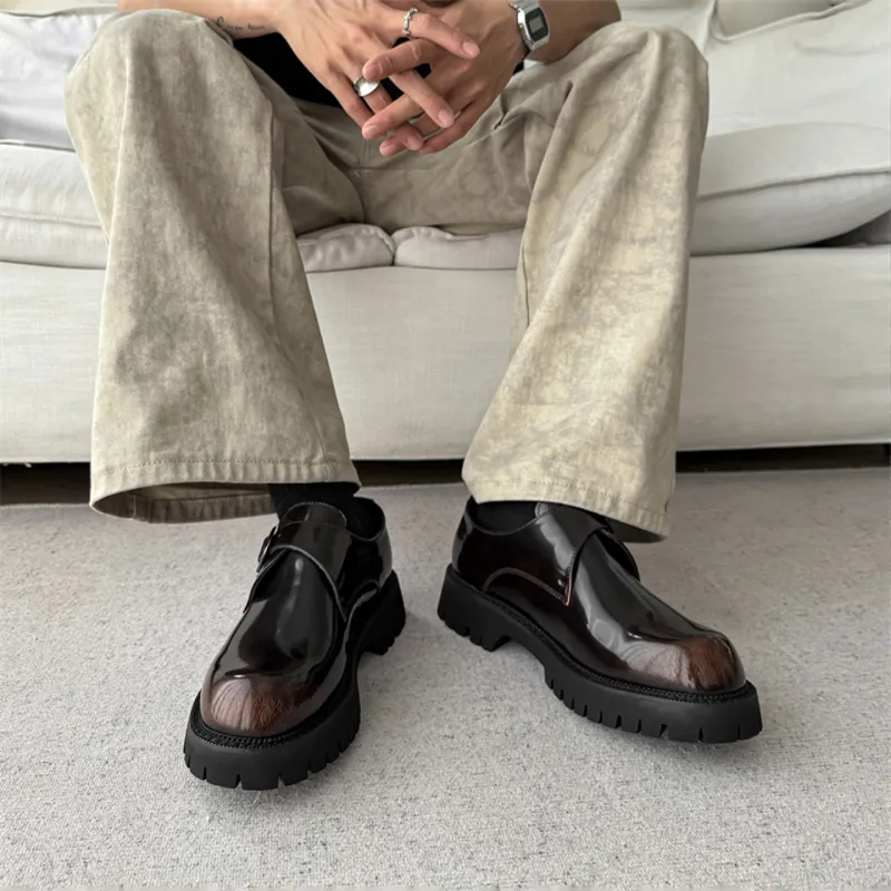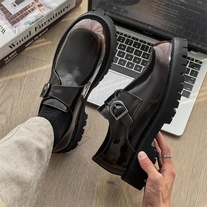 Lanza Британский Блестящий Кожаные туфли Мужской Формальная одежда Бизнес Платформа Slip-On Мужские повседневные туфли