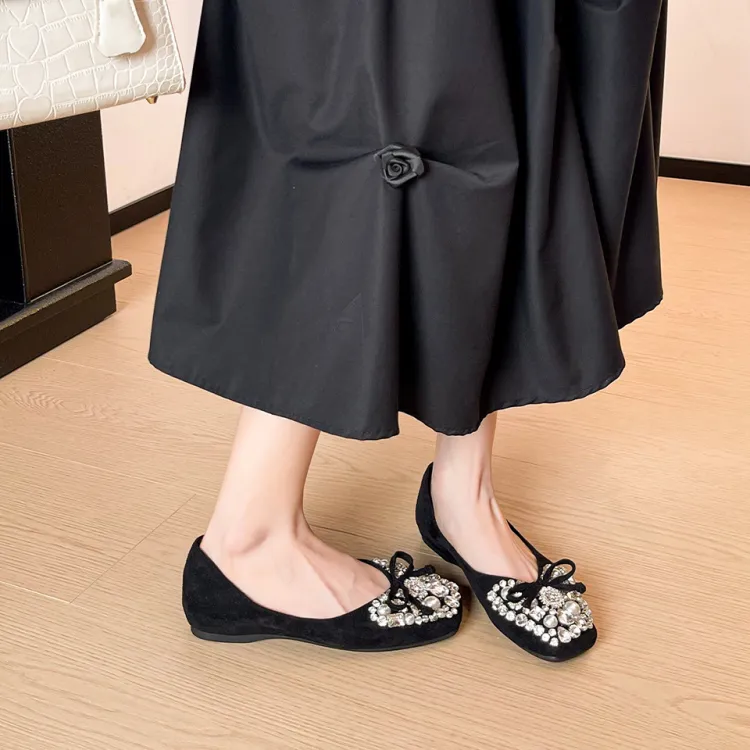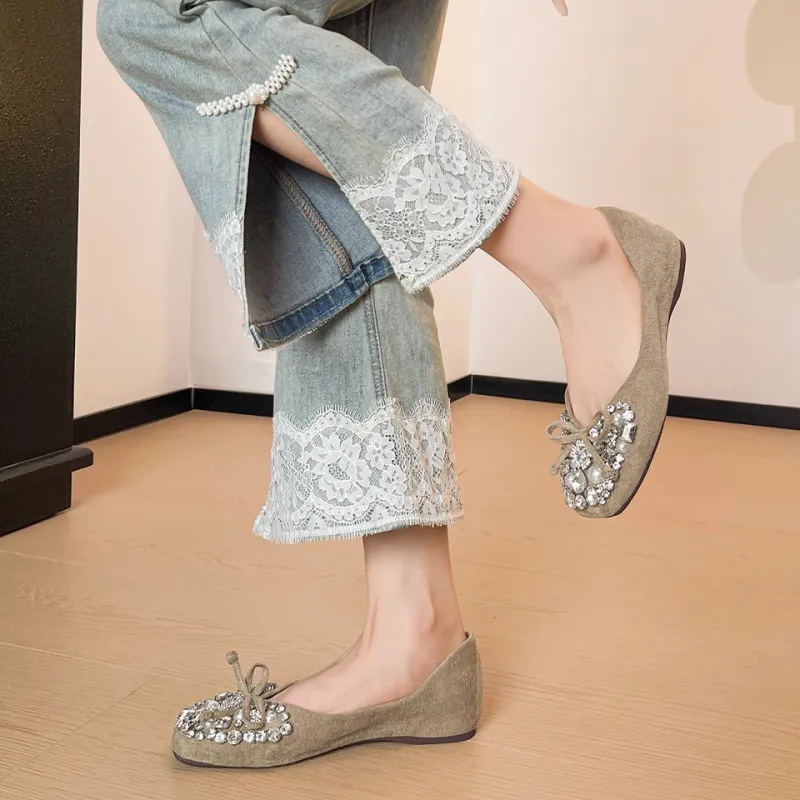 Lanza Французский Осенний Обувь для свадьбы Стразы Открытый носок Большой размер Женская обувь Плоская подошва Удобная повседневная обувь Женская
