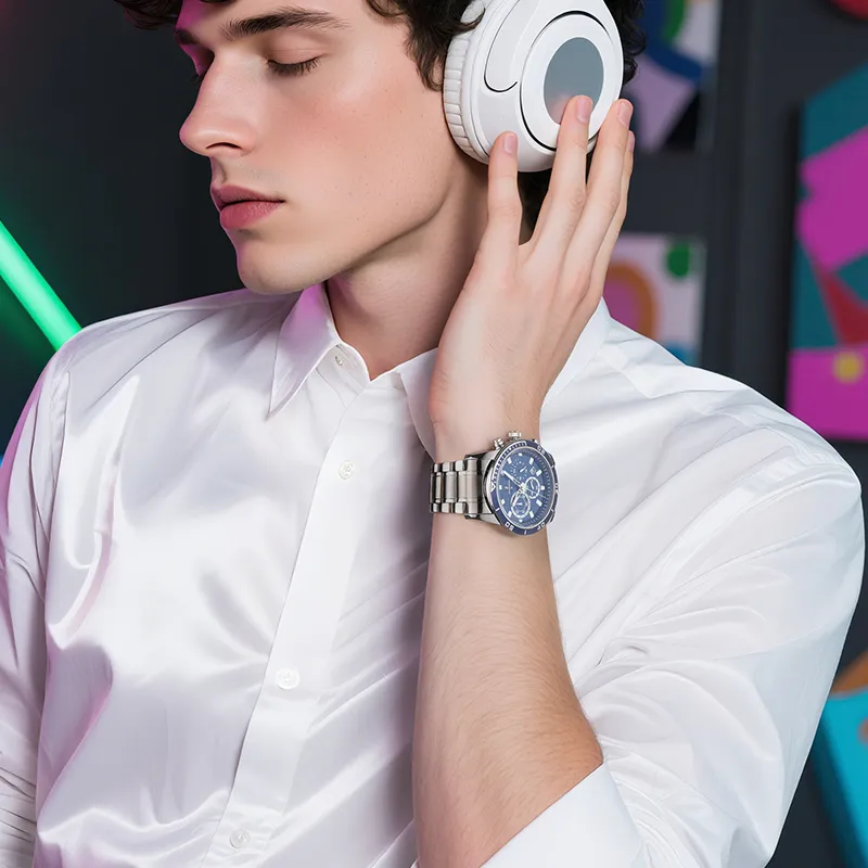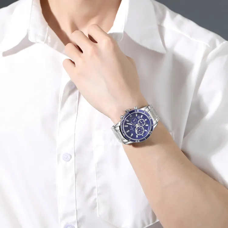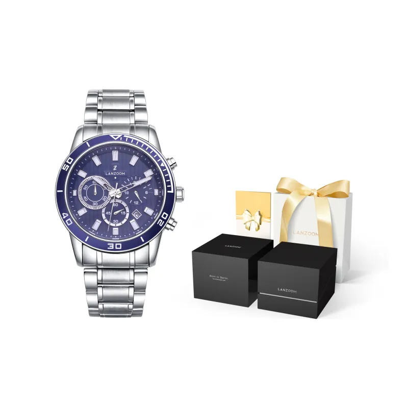 LANZOOM Кварцевый механизм Часы Мужские Синий циферблат