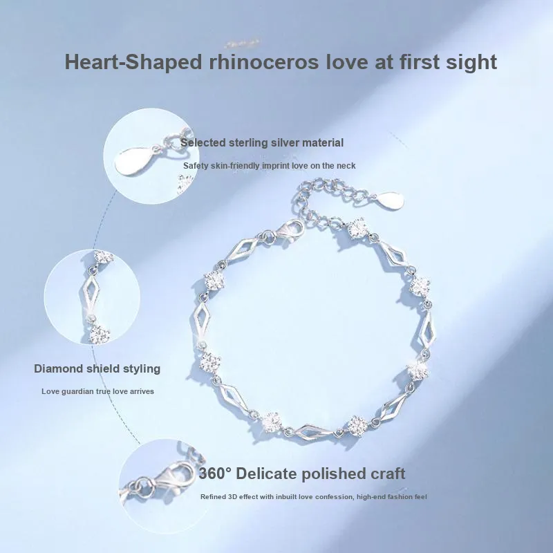 [Серебряный] Браслет в форме сердца с носорогом