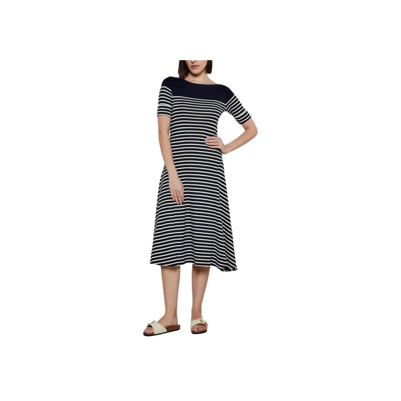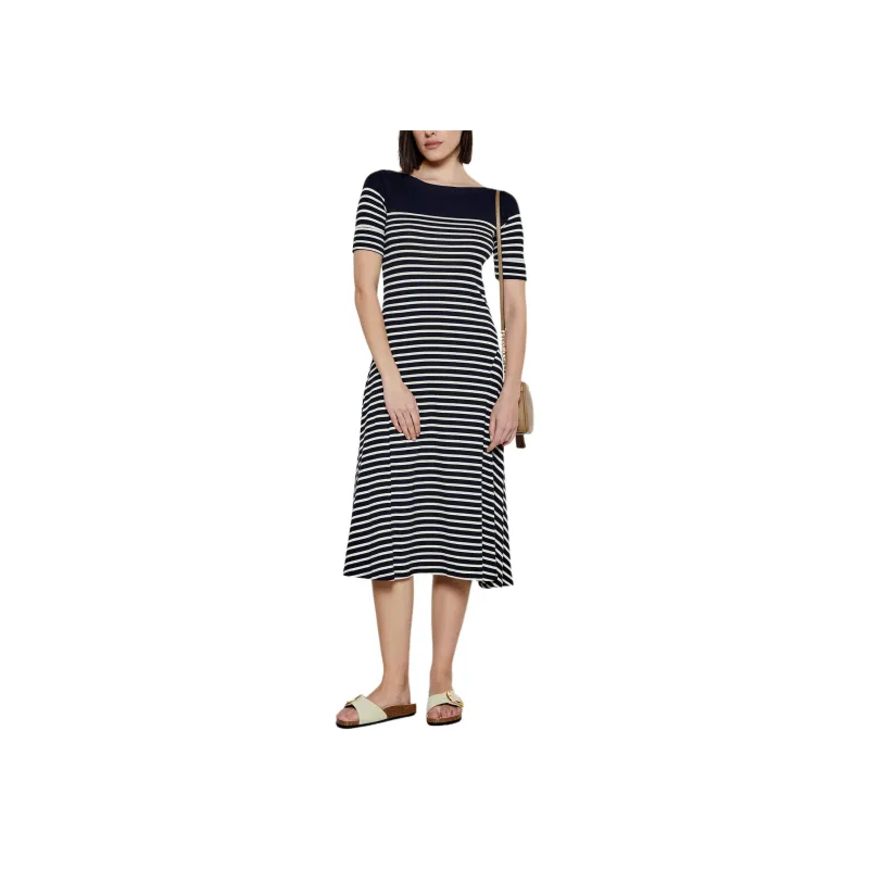 LAUREN RALPH LAUREN FW24 Длинное платье с длинными рукавами женское черное и белое