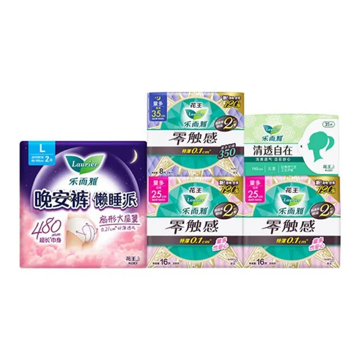 Laurier ZERO Touch Lazy Sleep Позиционирование стиля Day Night Комбинация Гигиенические прокладки Дышащий FIVE Штук Набор