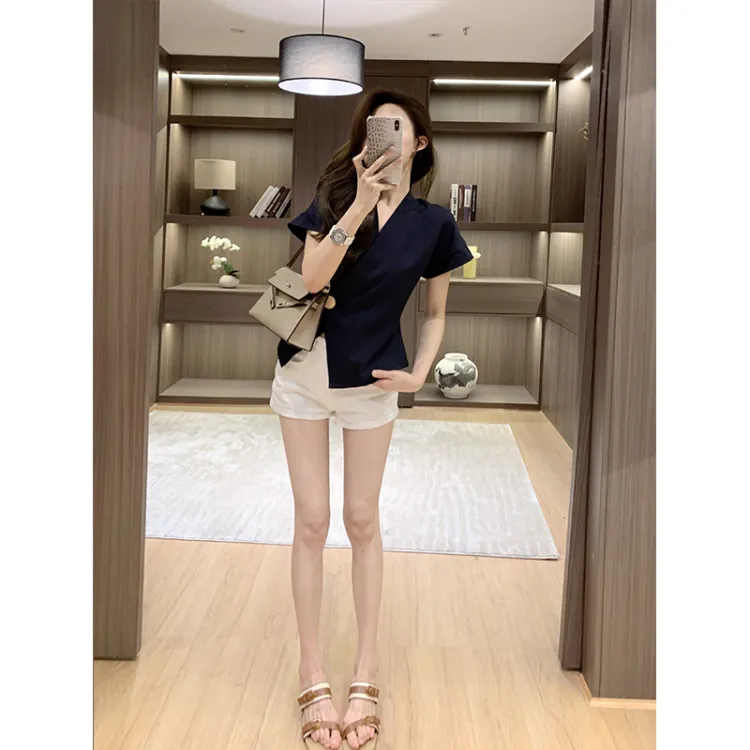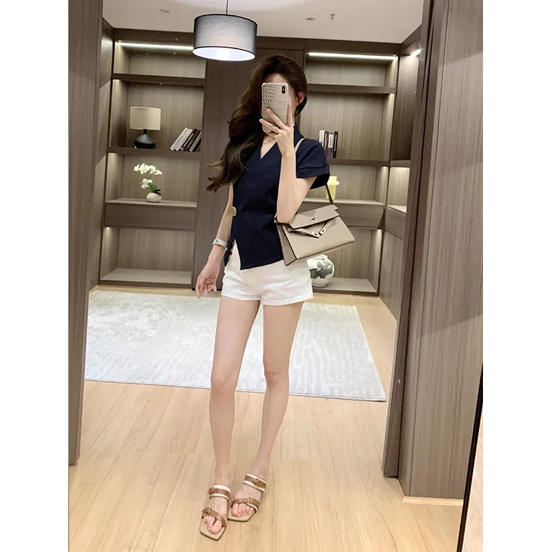 Leather Cat Темно-синие женские рубашки
