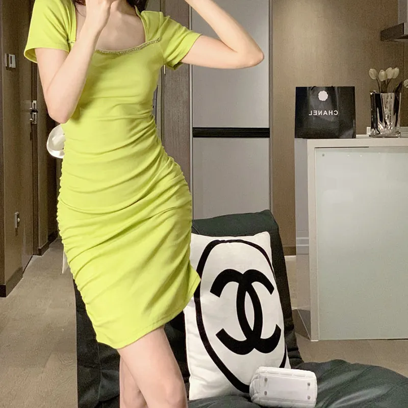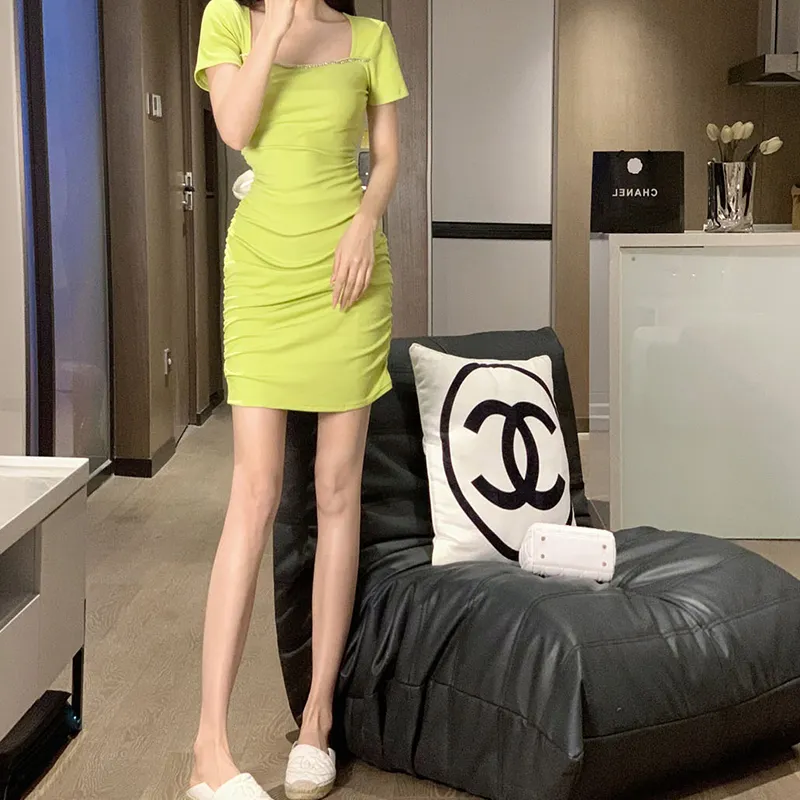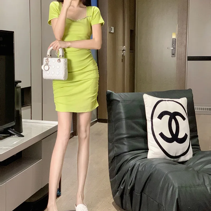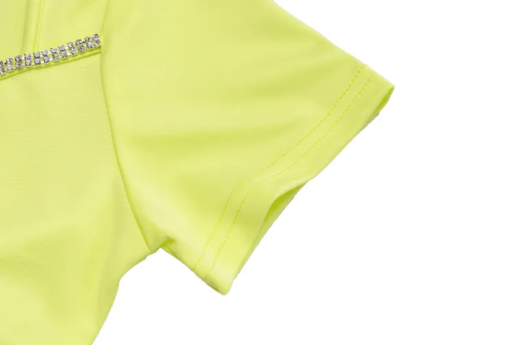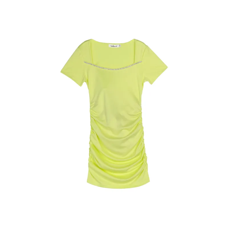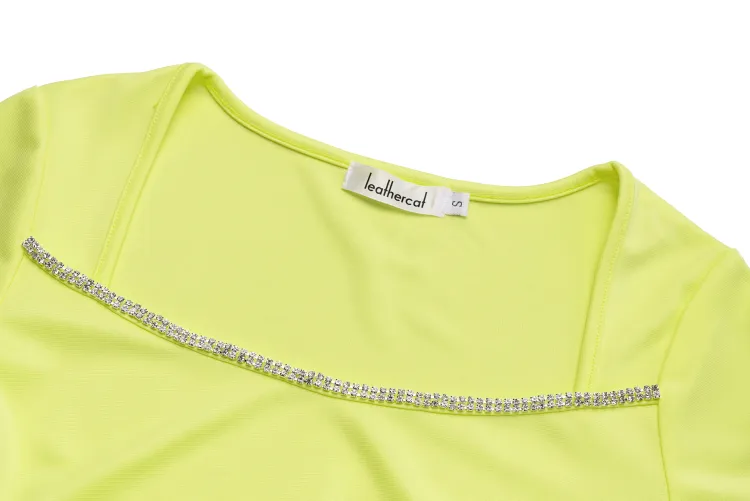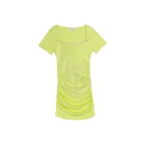 Leather Cat Желтое Женское Короткое Платье с Рукавами