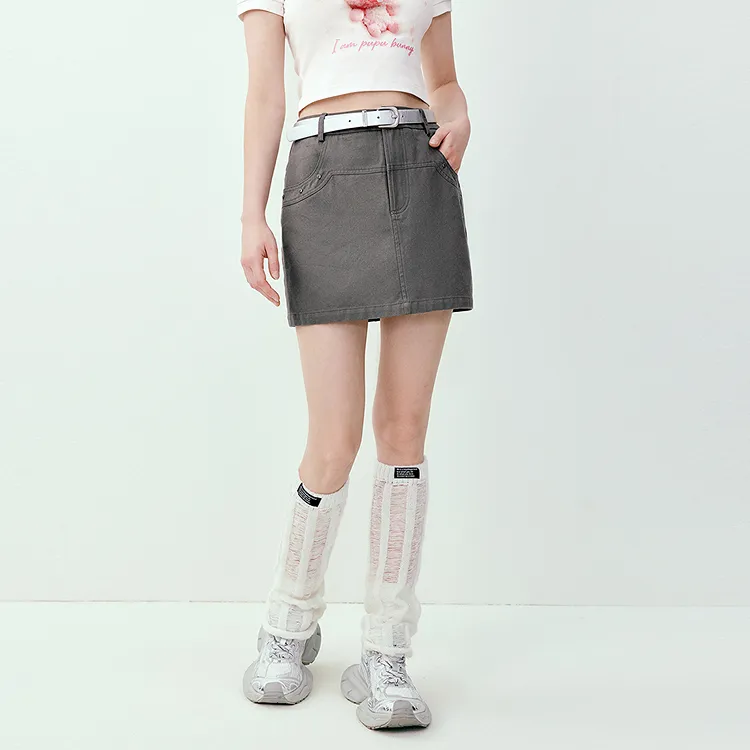 LEDIN Серый Женские Повседневные Короткие Юбки