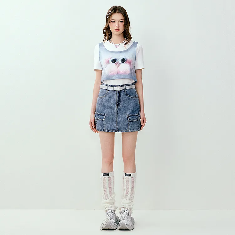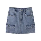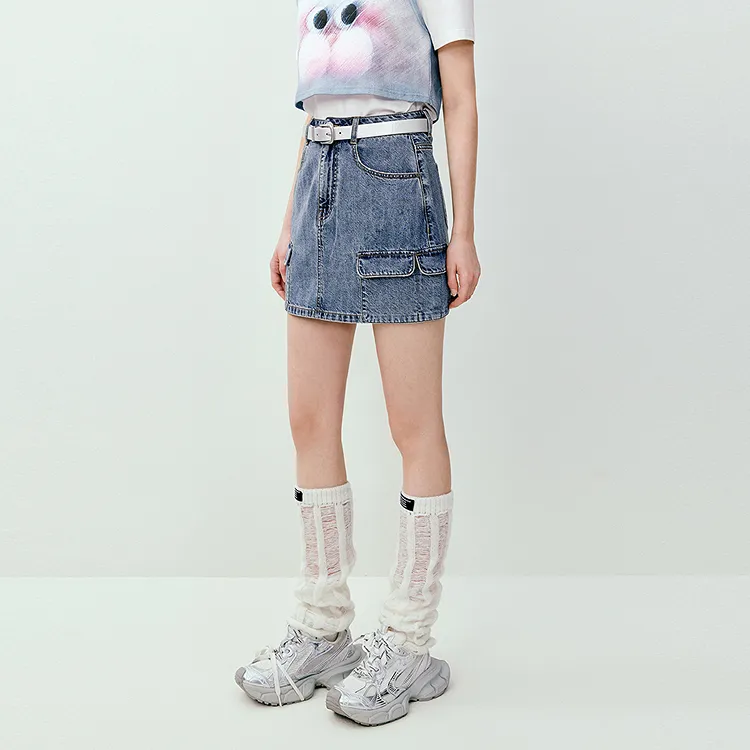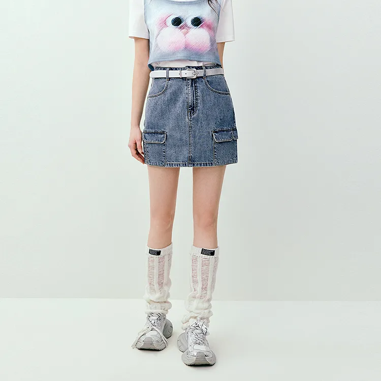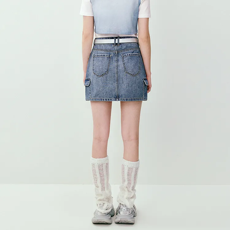 LEDIN Светло-синий деним Женские джинсовые короткие юбки