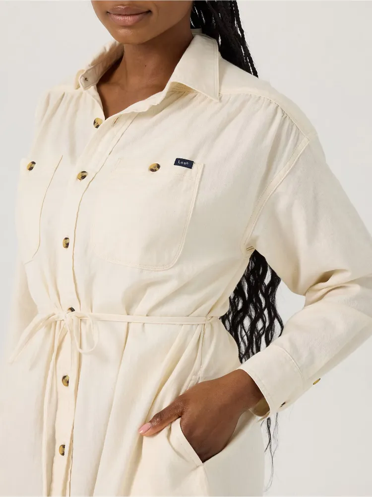 Lee Длинный рукав Платье Женское Экрю
