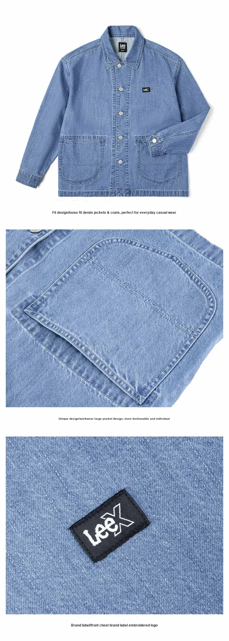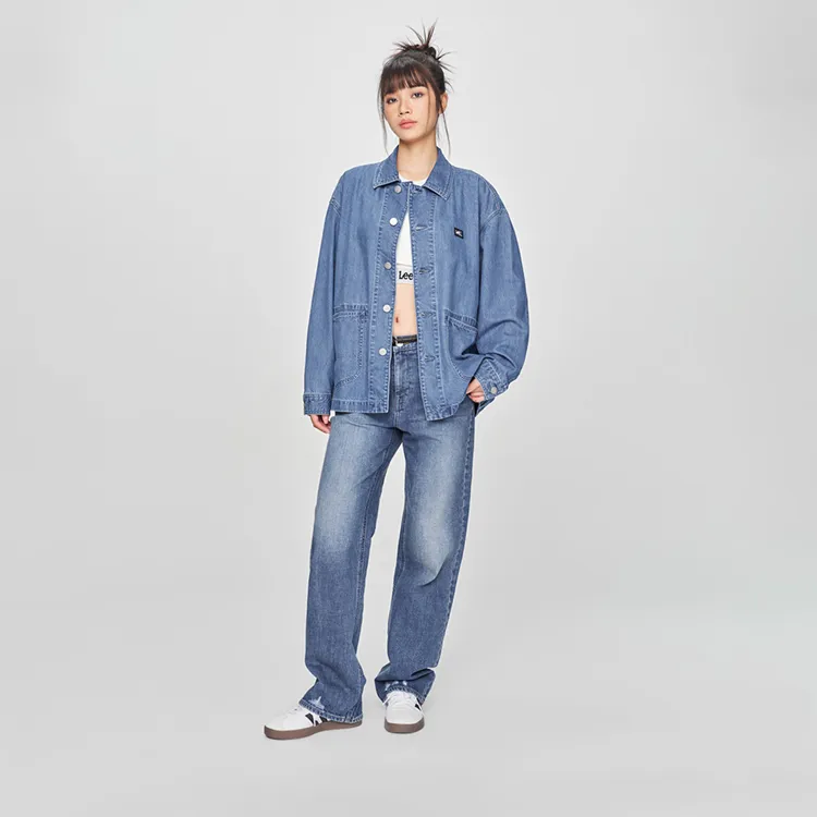 Модель совместного бренда Lee SS25 Деним Куртка Унисекс Light Синий