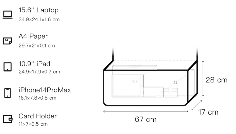 Длина (размер в длину) 67 см, Ширина корпуса 17 см, Длина корпуса 28 см