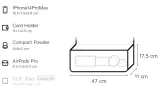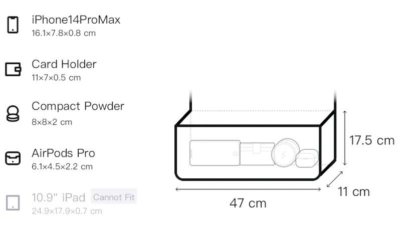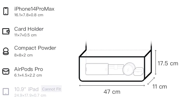 Длина (размер в длину) 47 см, Ширина корпуса 11 см, Длина корпуса 17,5 см