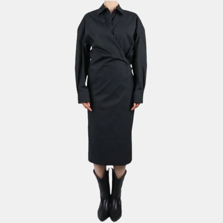 Lemaire Длинное платье с длинными рукавами женское черное