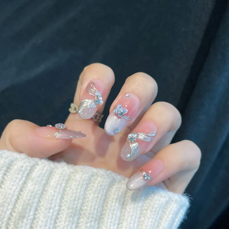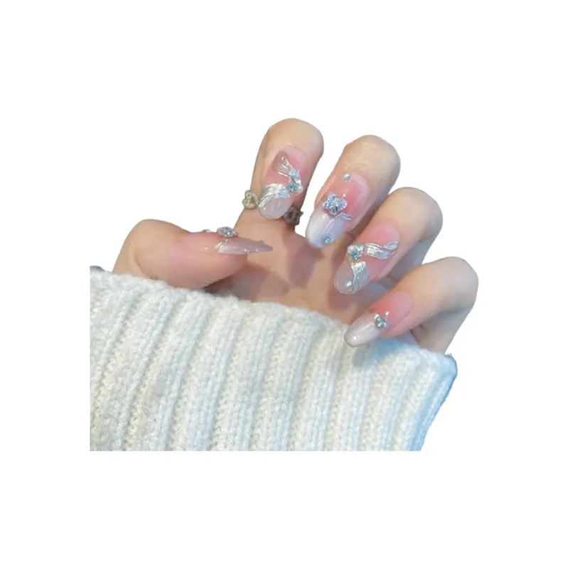 LEMONAIL Pearl Icy Clear Brightening с Sparkle False Nail Almond Oval MID Length (Length Size)