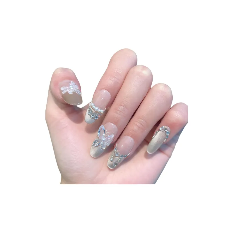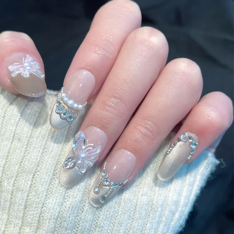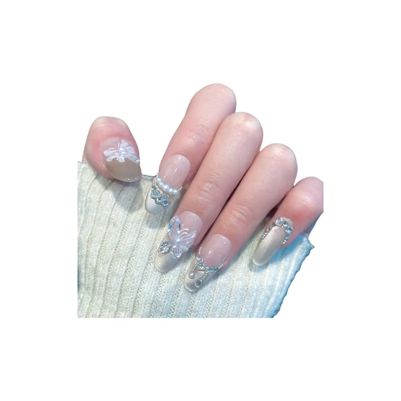 LEMONAIL Ручной работы Кокетливый стиль False Nail Овал Заостренный Тип Телесный Ледяной Прозрачный Градиент Кошачий глаз S M L XL