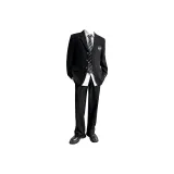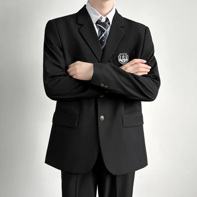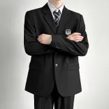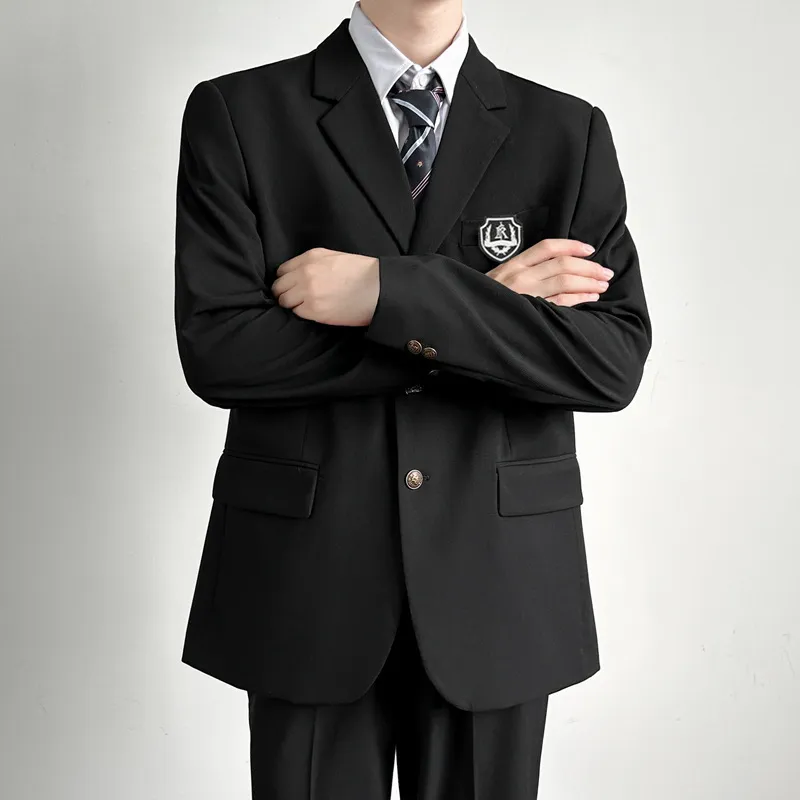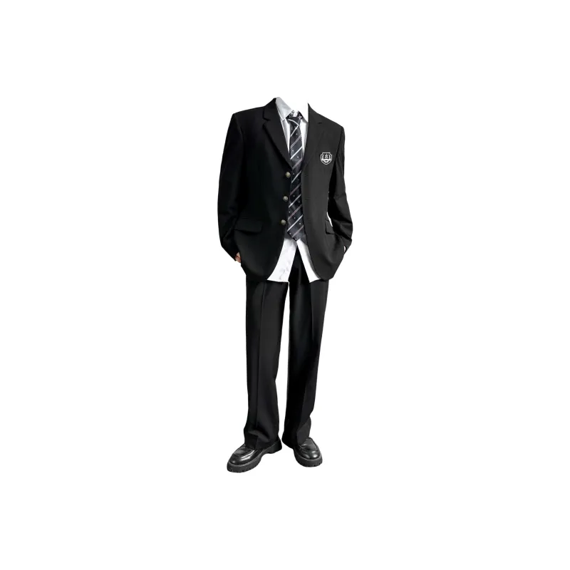 [Комплект из 4 предметов] Черное пальто + белая рубашка + темно-синий галстук + черные брюки для костюма