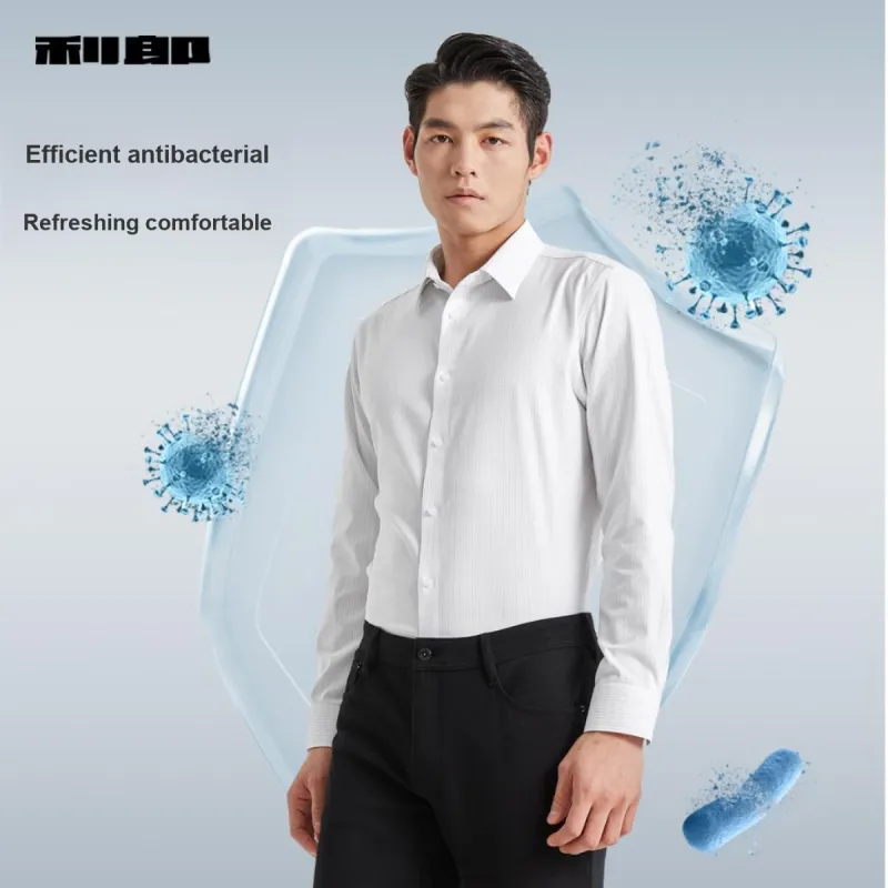LESS IS MORE SS25 Рубашка Мужская Небесно-голубая с Белым Полосатым
