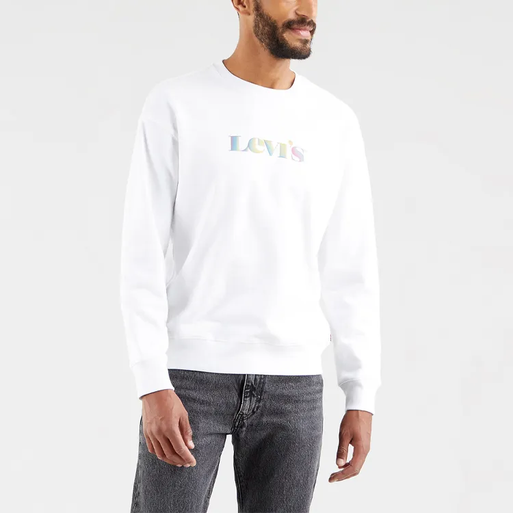 Levi's Круглый вырез Облегающий Обычный Длинный рукав Толстовка Мужской Белый