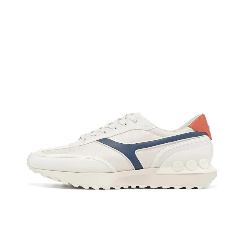 LI NING 1990 Беговые кроссовки Низкий топ Экрю/Серый Индиго/Чайный красный Мужской