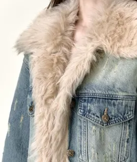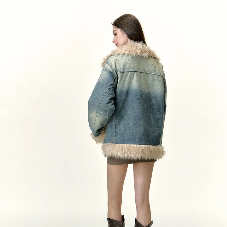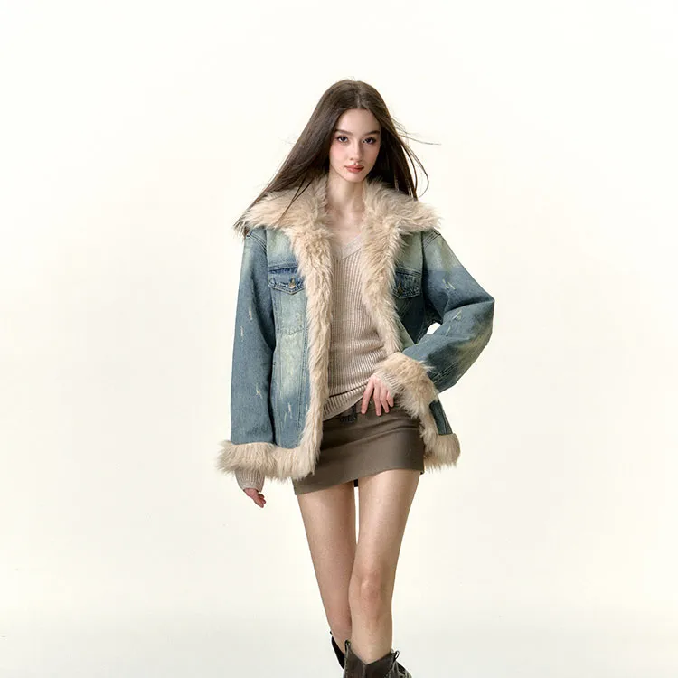 Li Zixian Denim Jacket Women's Vintage Blue Ли Зиксянь Деним Куртка Женская Винтажный Синий