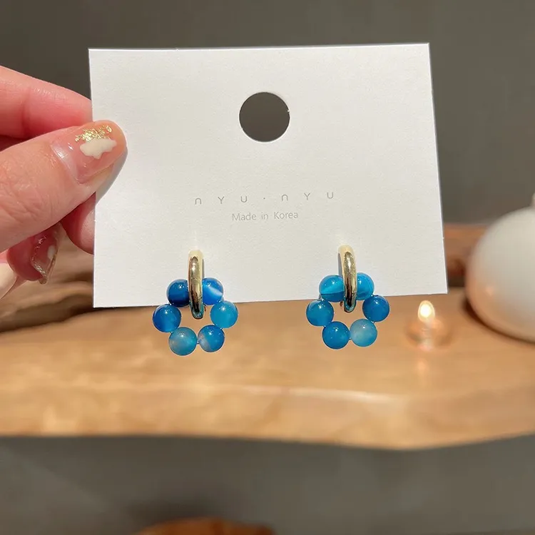 Стиль:Серьги-кольца с синими бусинами