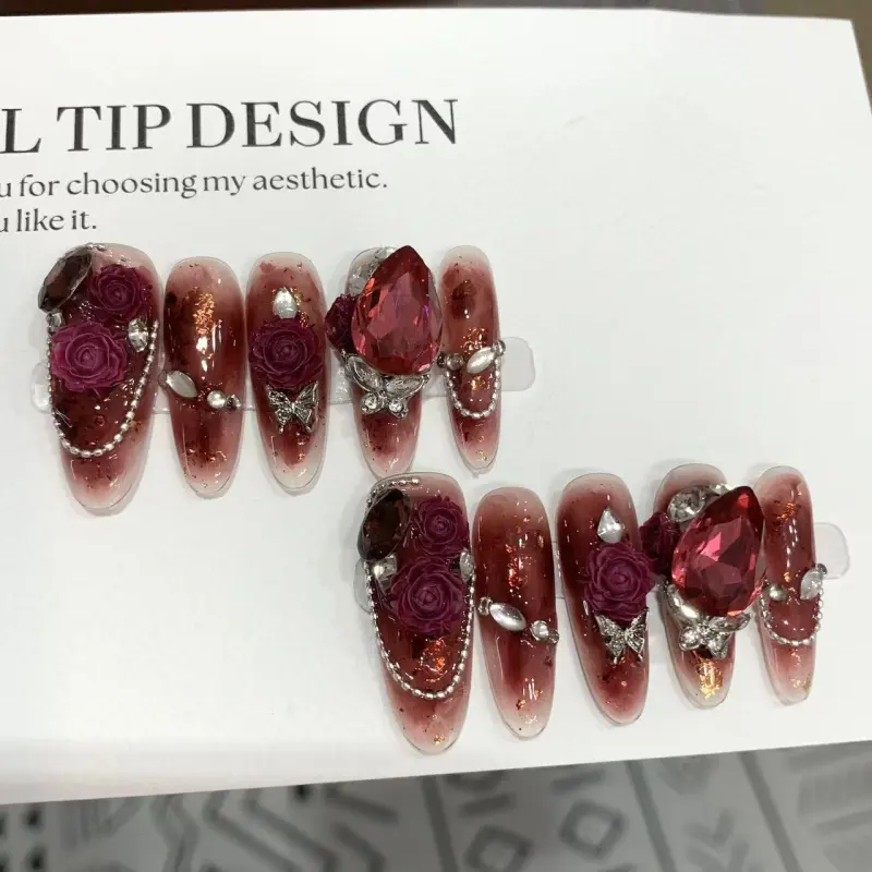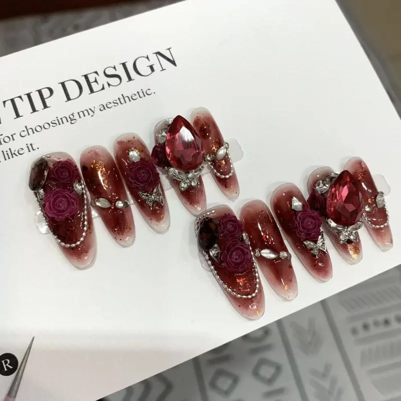 LIANJING Красный Розовый Handcrafted False Nail Премиум 3D Золотой Фольга Для Отбеливания И Элегантный ОБЛЯЧКА 30MM Овал