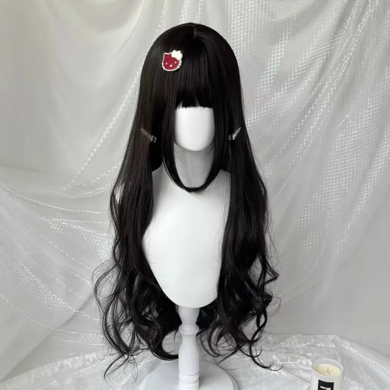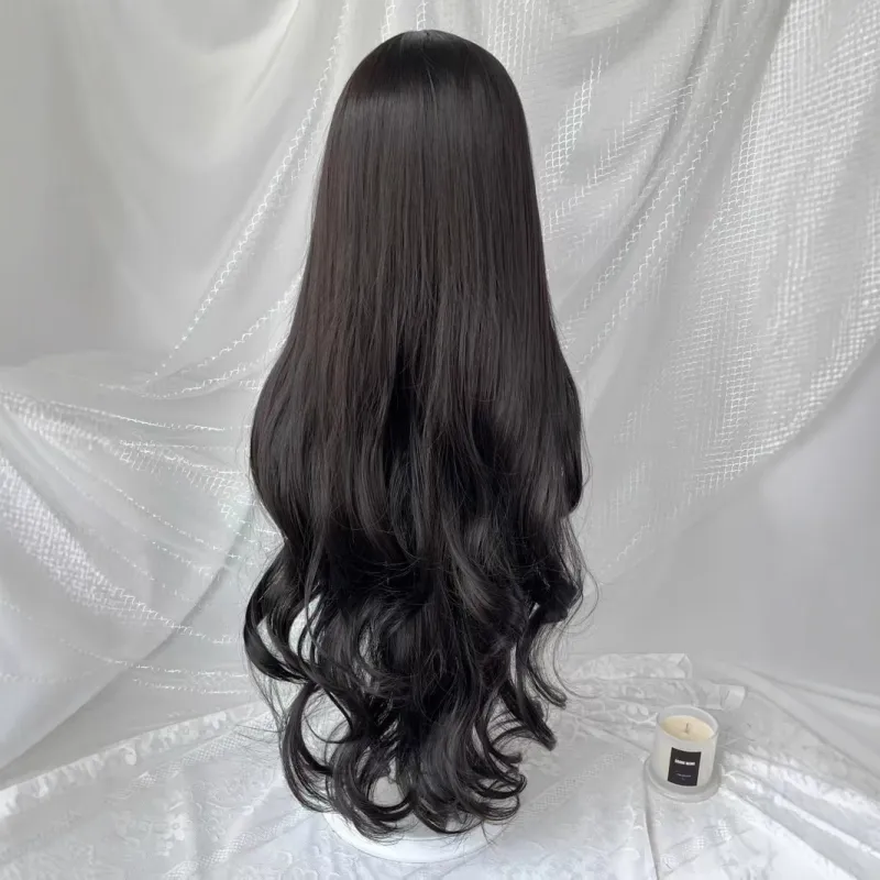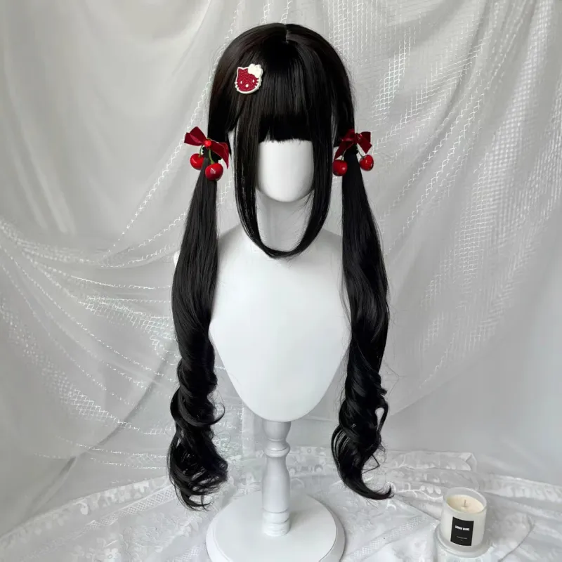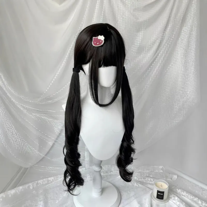 LIANXIANGKE 85 см Темный чайный длинный кудрявый парик с двумя хвостиками стильные челки в цвете "колонна" Лолита вся голова высокая температура пряжа