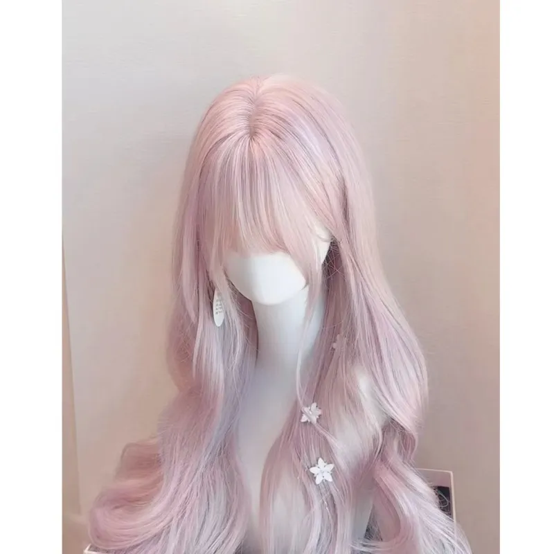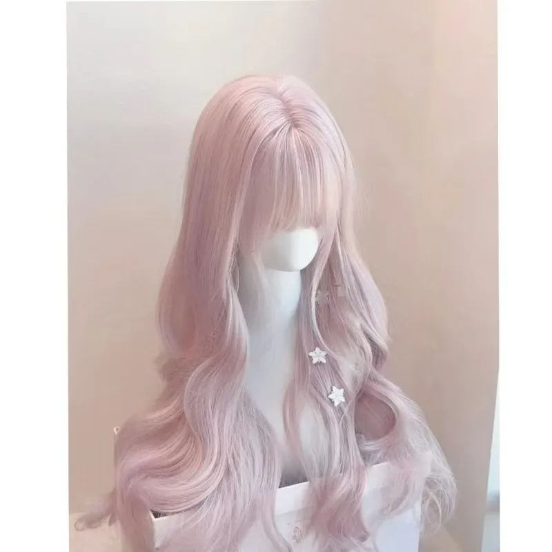 LIANXIANGKE BLUNT Cut с боковой частью Лолита розовый косплей большая волна длинный полный парик высокая температура пряжа