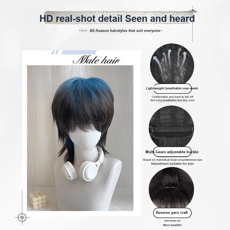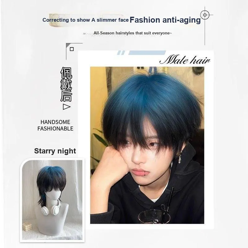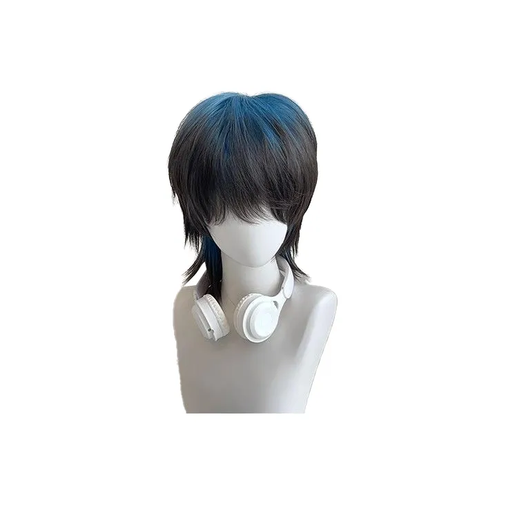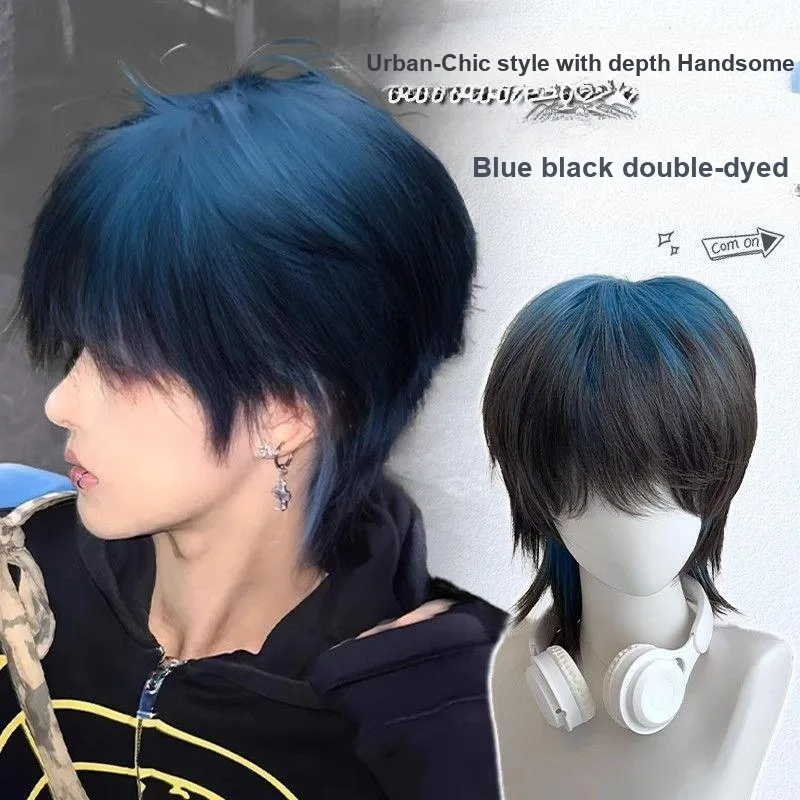 LIANXIANGKE Парики Wolf Ласточкин хвост Карп Голова Перука Мужской Синий черный Градиентный Полная голова Набор Высокая температура Пряжа