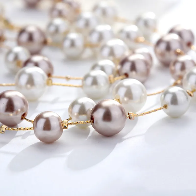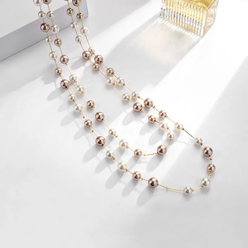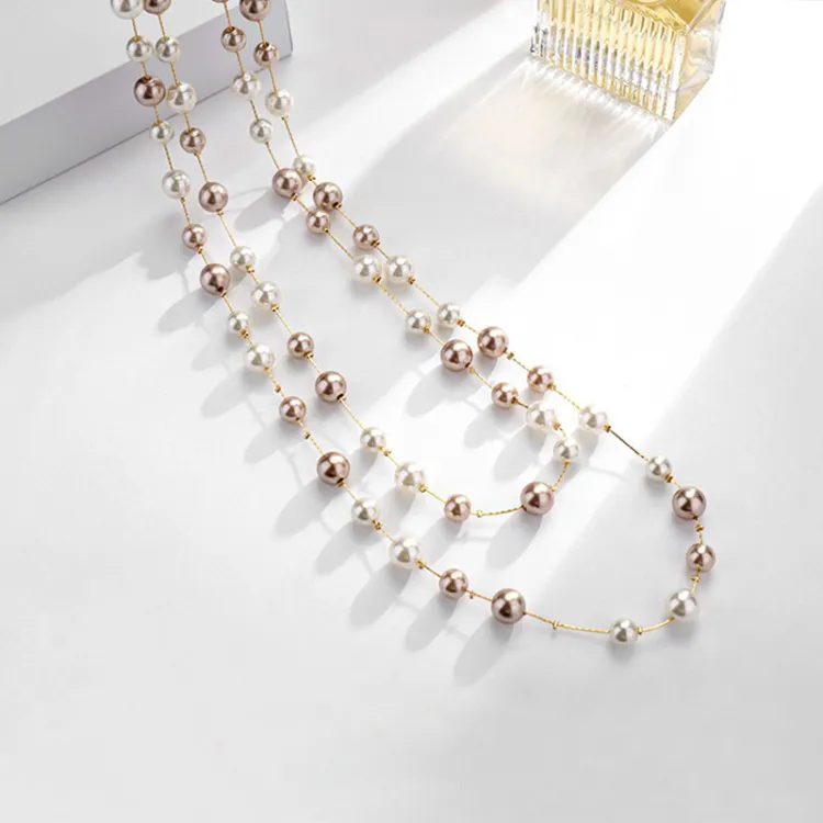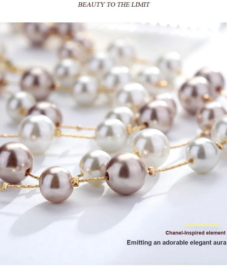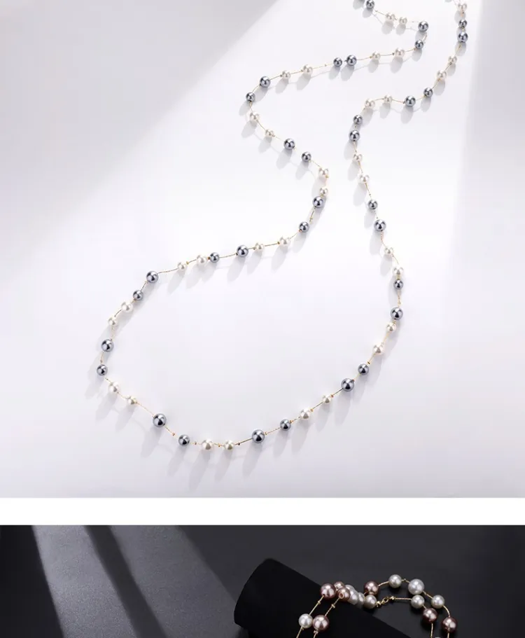 Стиль:Длинный женский свитер с цепочкой, искусственный жемчуг, двухслойное ожерелье