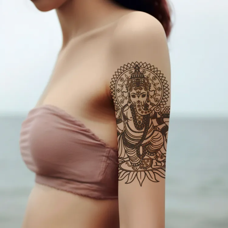 LIEJI Лотос с Слон GOD VII Травяной Tattoo Наклейка