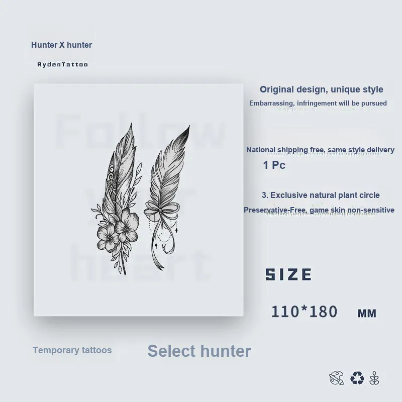 LIEJI Radiant Перо Травяной Наклейка для Татуировки