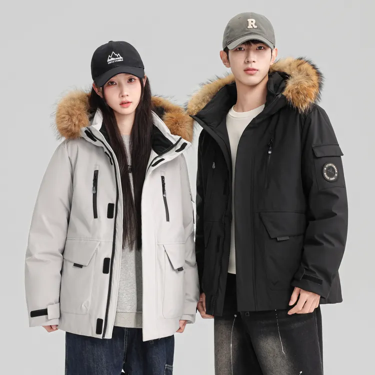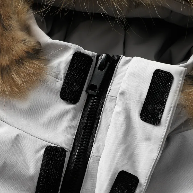 100% полиэстер Подкладка: 100% полиэстер Ткань подкладки: 100% полиэстер Мех шапки: енотовая собачья кожа Наполнитель: 90% утиный пух Частичный наполнитель: 100% полиэстер