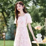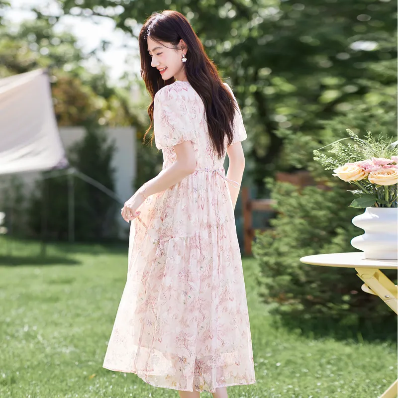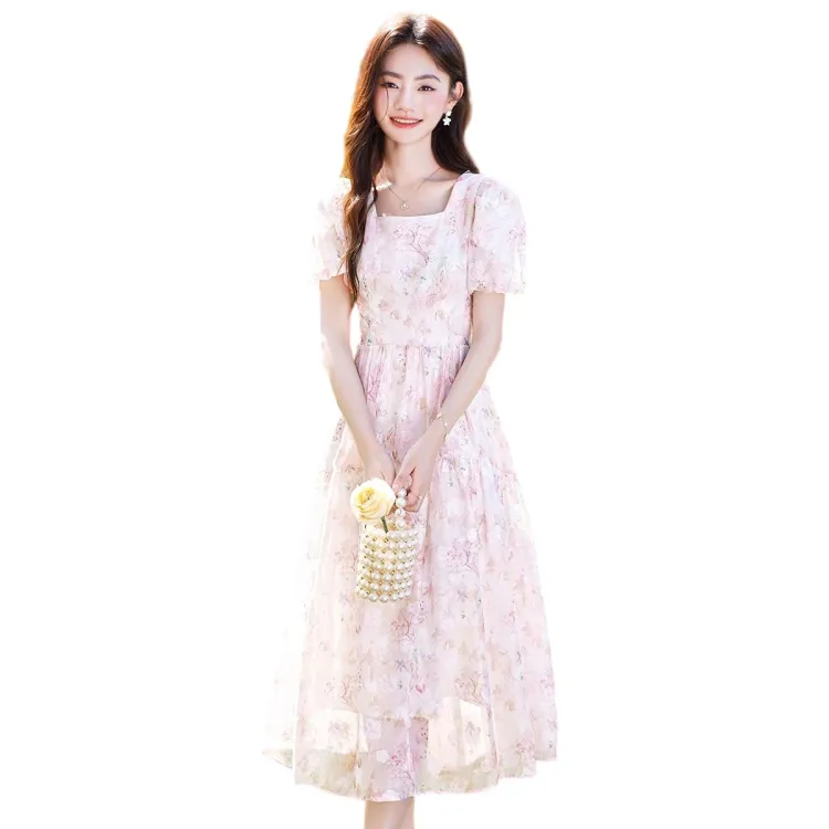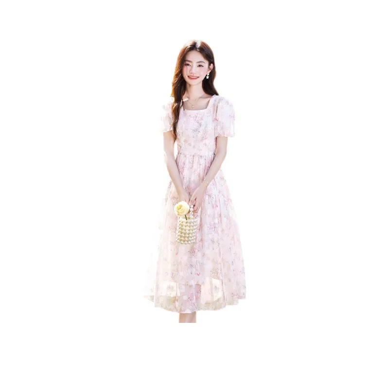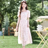 Like The Age Of Water 2025 Летний Короткий Рукав Платье Женское Розовый
