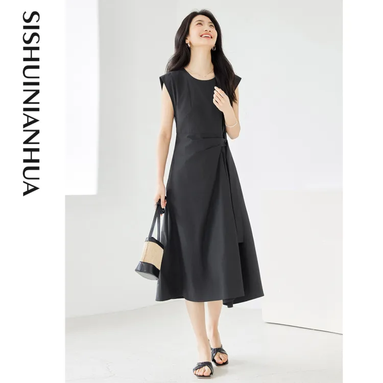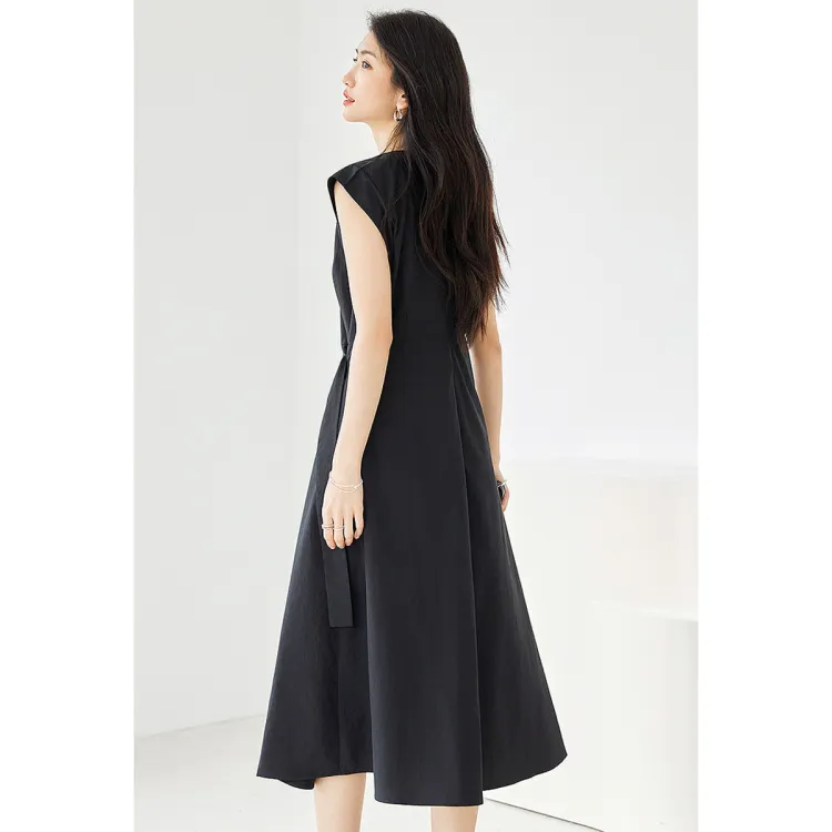 Like The Age Of Water Короткий рукав Платье Женское Черное