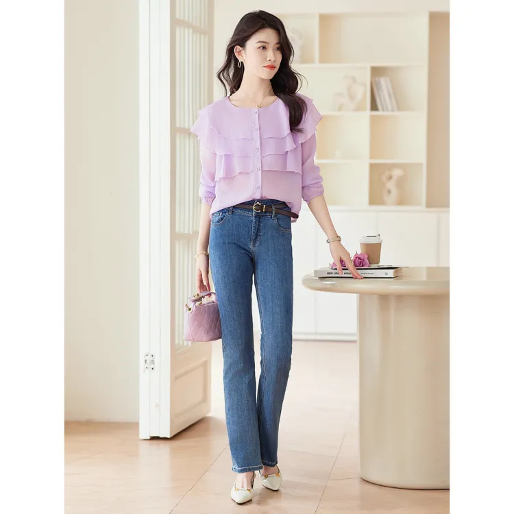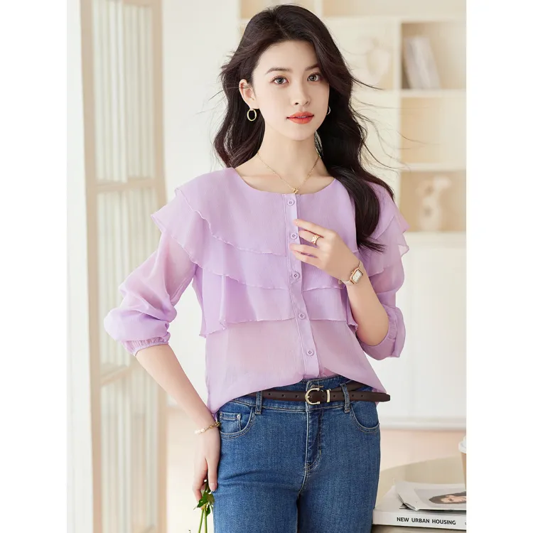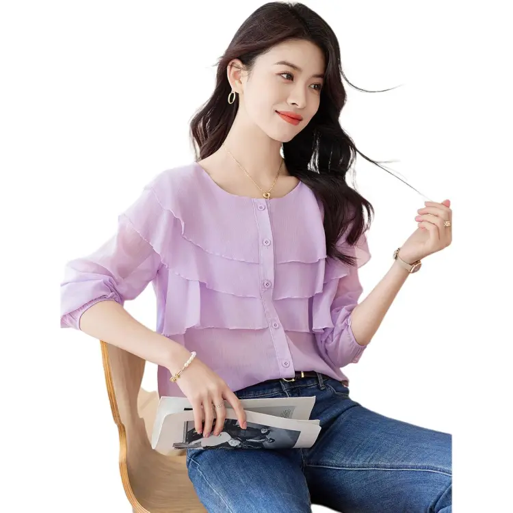 Like The Age Of Water Весна Лето Осень Рубашка Свободного Кроя Женская Фиолетовая