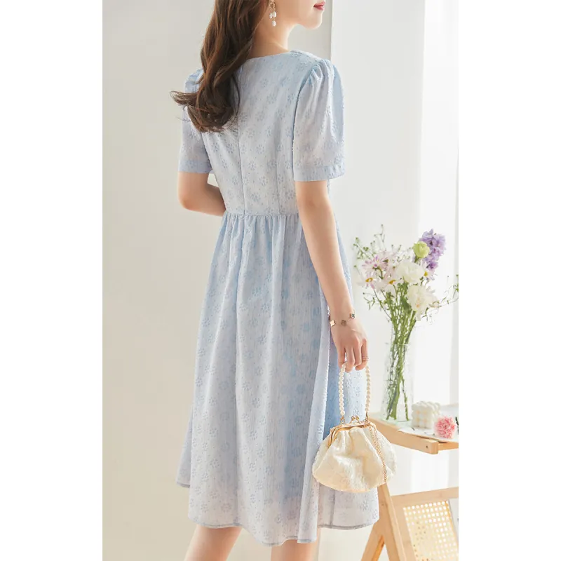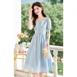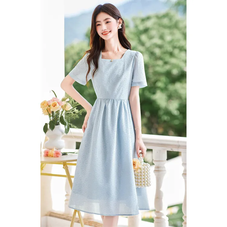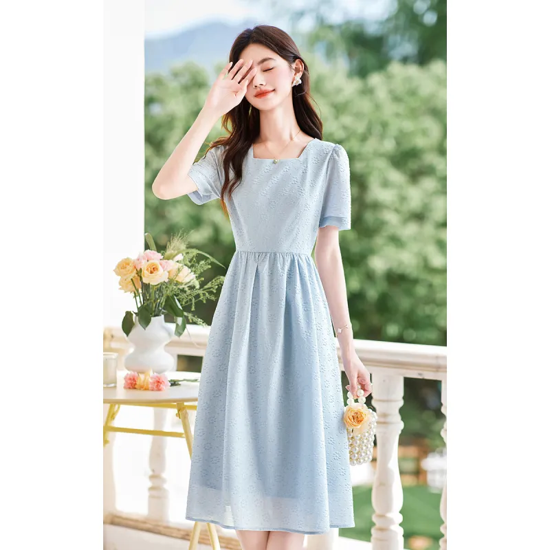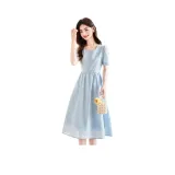 Like The Age Of Water Летний Короткий Рукав Платье Женское Синий
