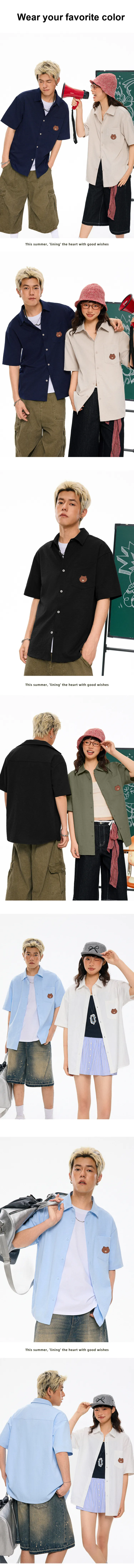 [Короткий рукав] Светлый бежевый (Круглое лицо, медведь, логотип на груди)