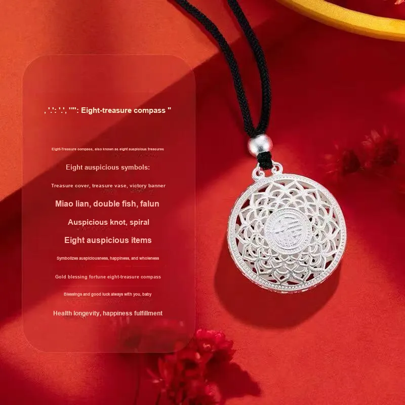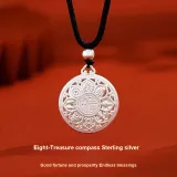 Серебряный компас с украшением "Восемь сокровищ", размер 02 [1 упаковка]