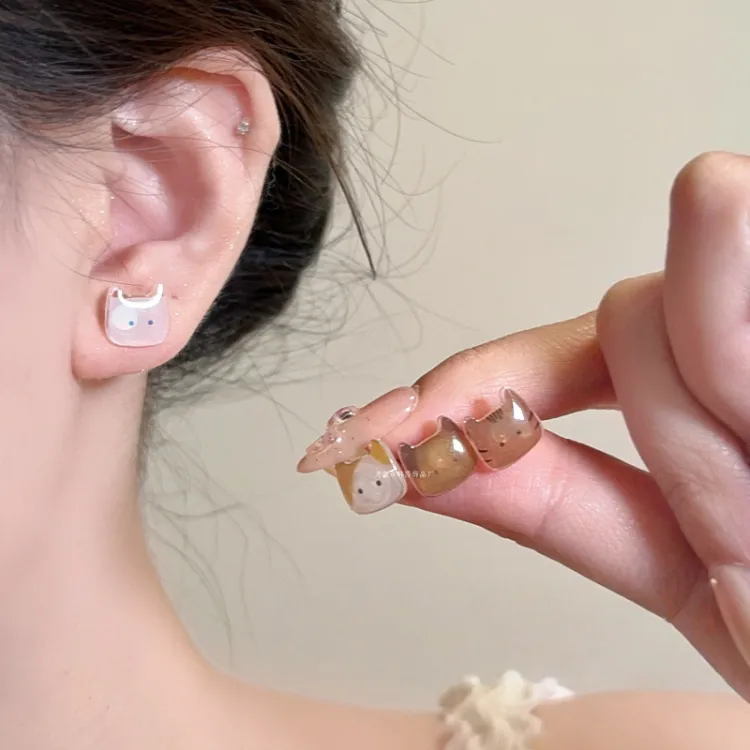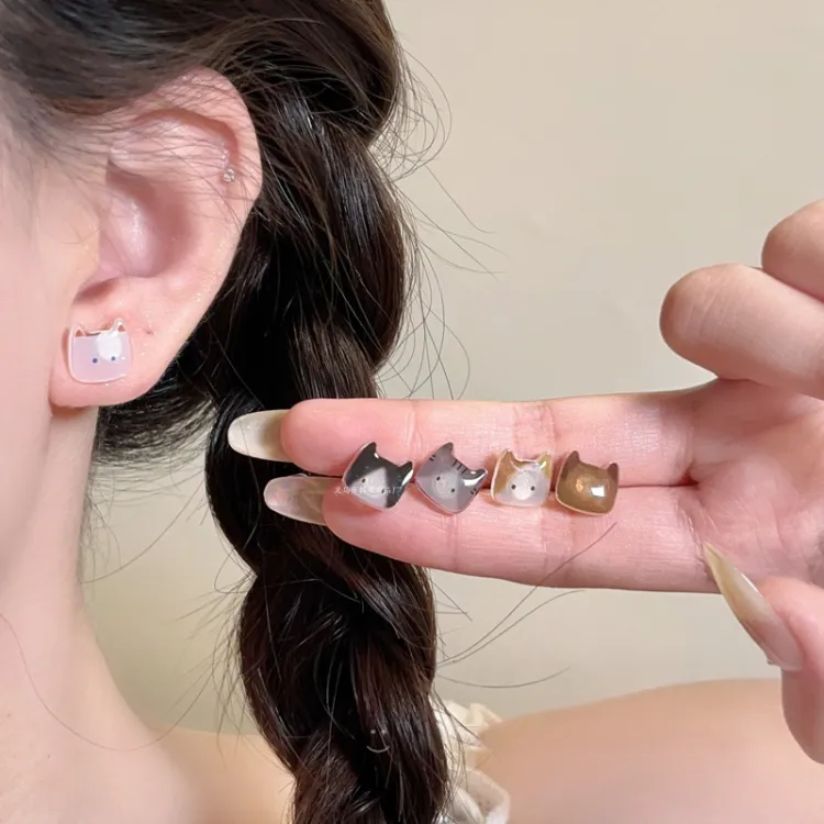 Стиль:Серьги-гвоздики с милым котенком [Стиль 1]