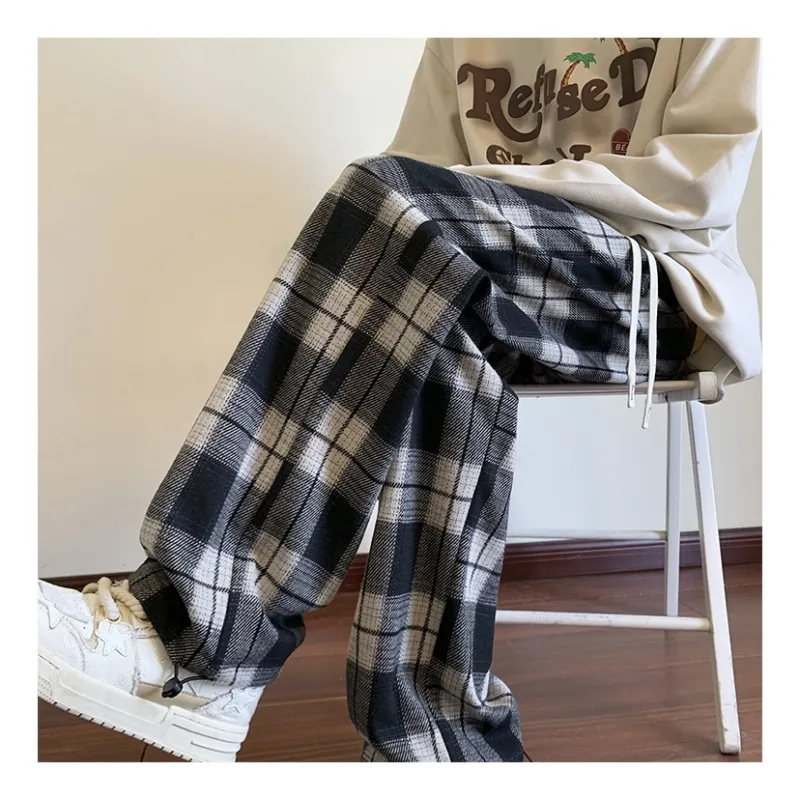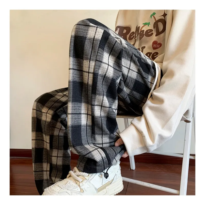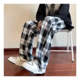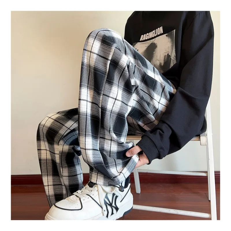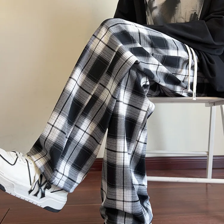 LINGSHI Черный Белый Клетка Унисекс Повседневные Штаны