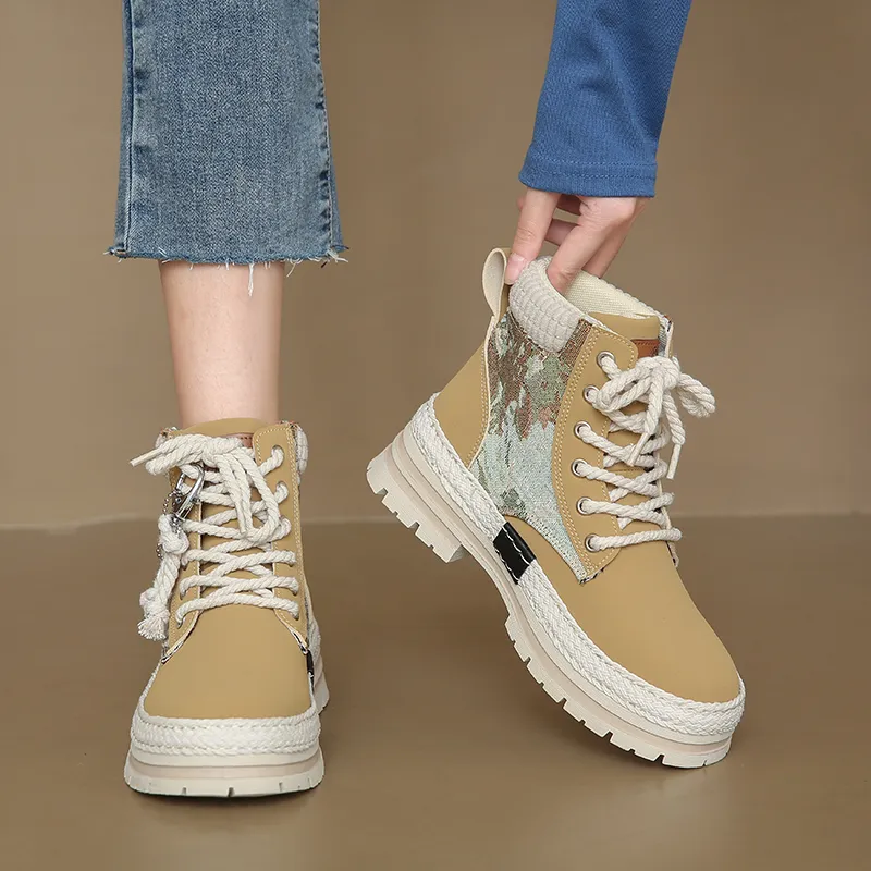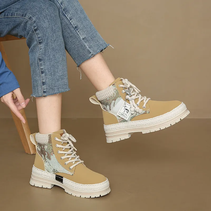 LINGWUZHE Короткий MID Голень Мартин Ботинок Женские