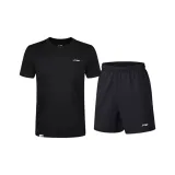Комплект:Быстросохнущий комплект черного цвета [DR Быстросохнущий, гигроскопичный, дышащий, с короткими рукавами + шорты с молнией для быстрого высыхания]