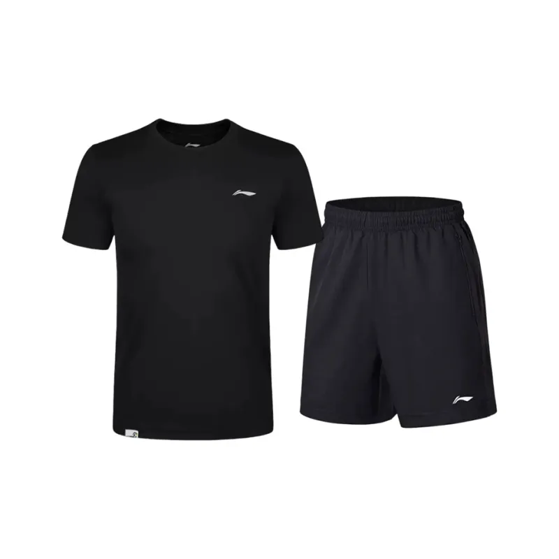 Быстросохнущий комплект черного цвета [DR Быстросохнущий, гигроскопичный, дышащий, с короткими рукавами + шорты с молнией для быстрого высыхания]