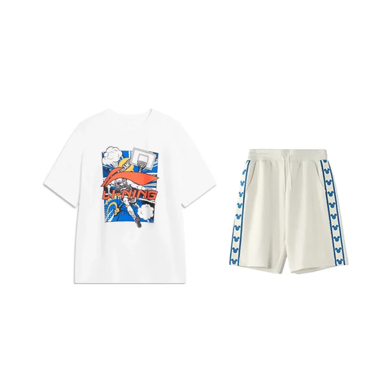 Комплект (Белая футболка + Шампанские белые тренировочные штаны)