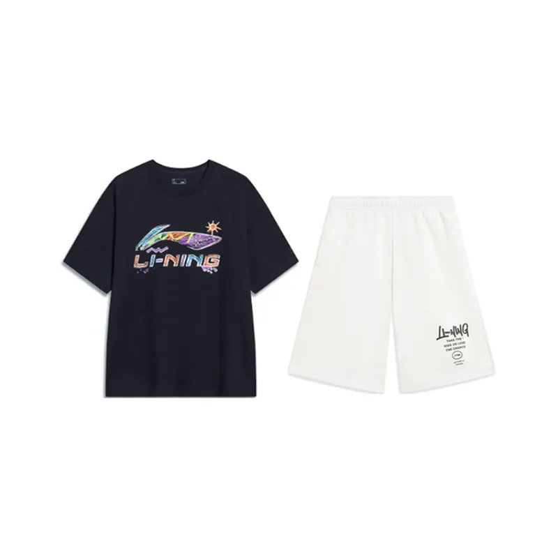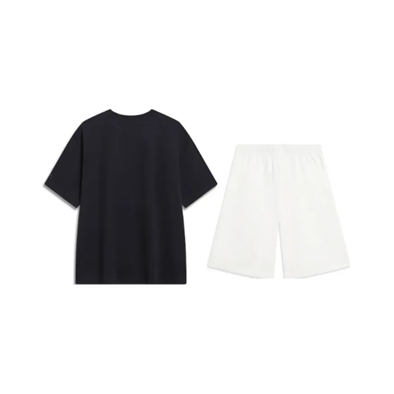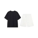 Комплект:Черная рубашка с коротким рукавом + белые спортивные брюки