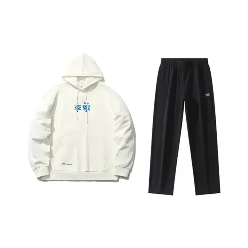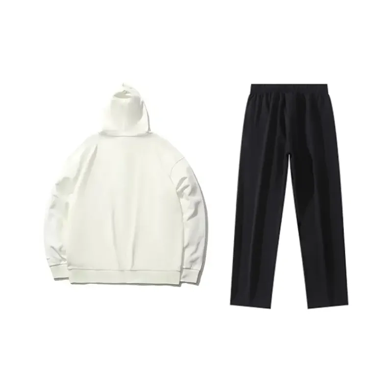 Стандартный белый пуловер, худи + черные прямые тренировочные штаны