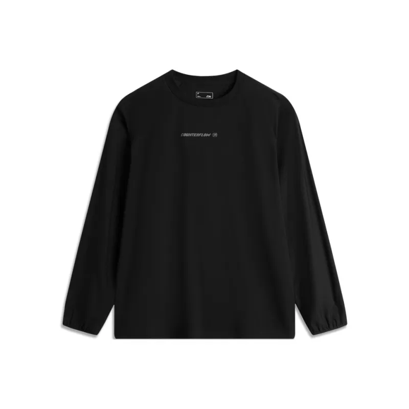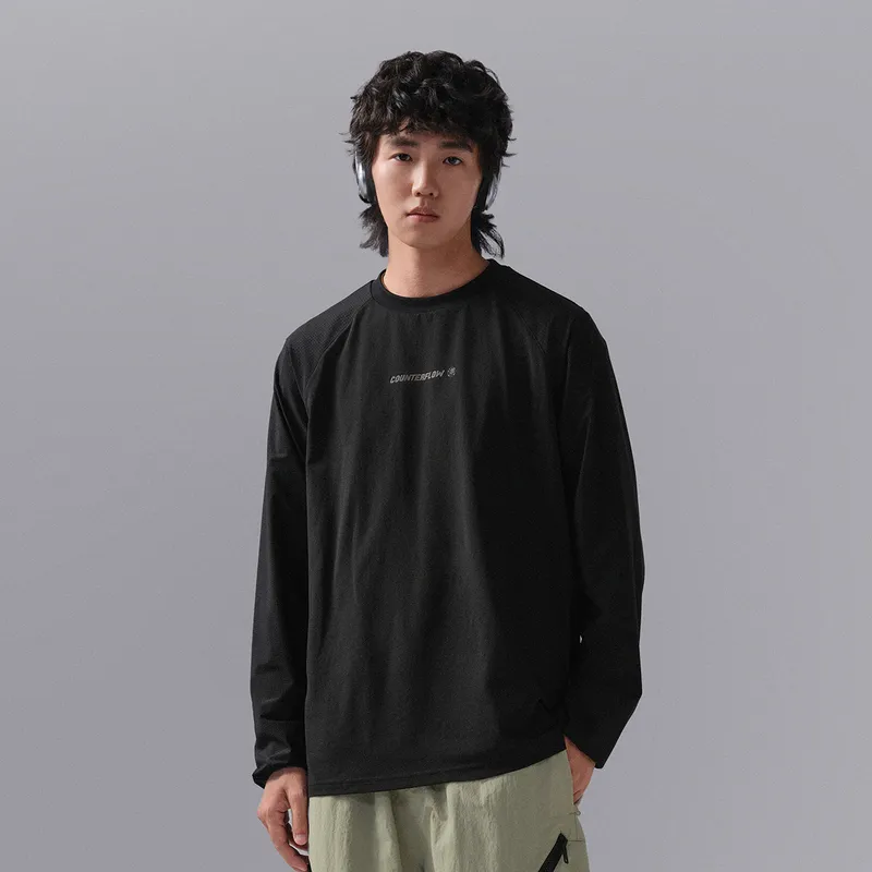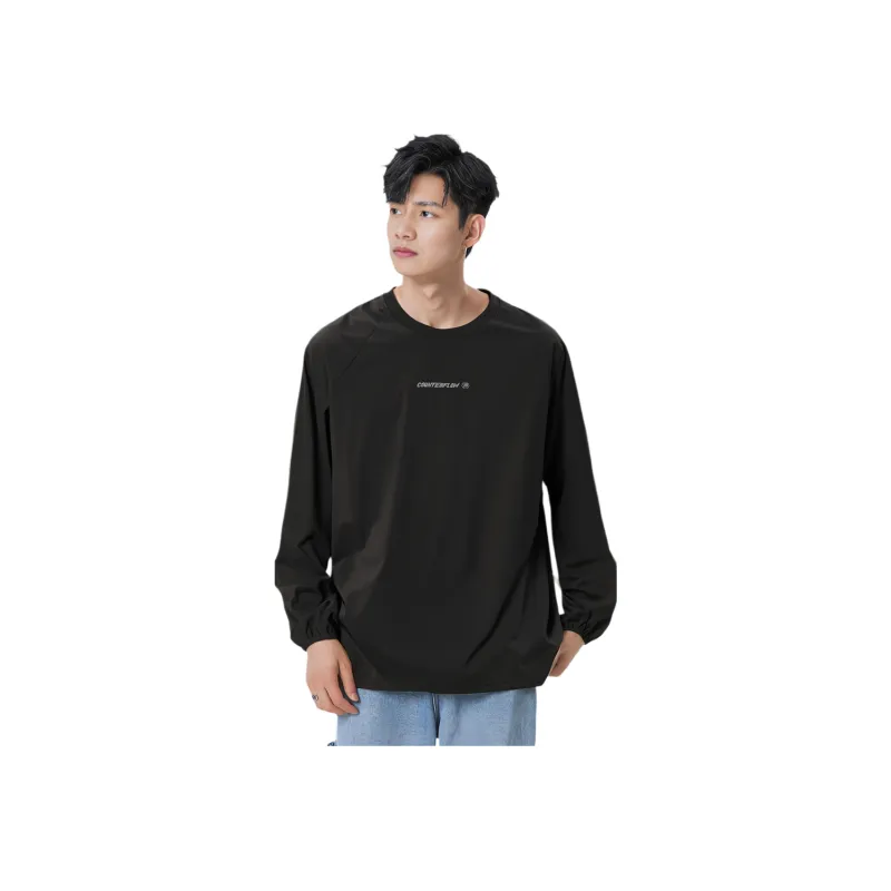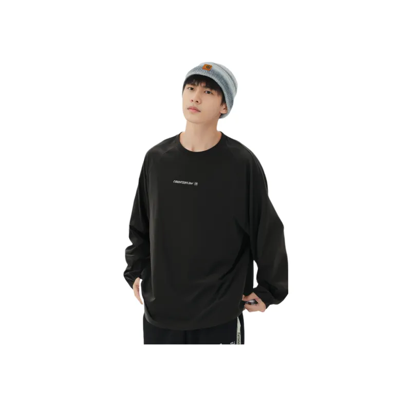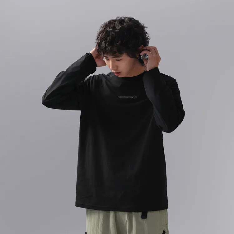 LINING Круглый вырез Свободный крой Быстросохнущая Трикотажная ткань Длинный рукав Мужская рубашка Черная